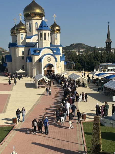 Εκατοντάδες κόσμος, νέοι, ηλικιωμένοι και παιδιά με προσμονή, υπομονή και προσευχή αναμένουν στην ουρά για να προσκυνήσουν το Θεομητορικό κειμήλιο.