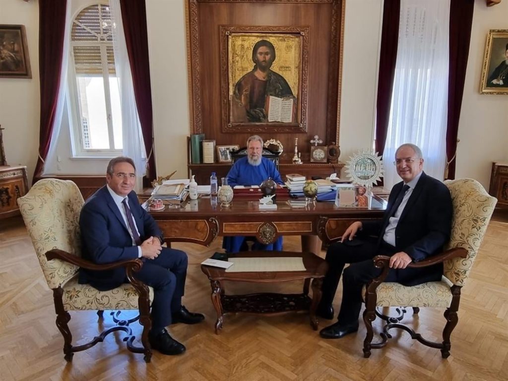 Η συνάντηση των δύο πραγματοποιήθηκε στην στην Αρχιεπισκοπή Κύπρου, στην οποία παρευρέθηκε και ο Γενικός Διευθυντής του Υπουργείου Γεωργίας, Αγροτικής Ανάπτυξης και Περιβάλλοντος (ΥΓΑΑΠ) κ. Αντρέας Γρηγορίου και συζητήθηκαν θέματα που αφορούν στην κατάσταση που δημιουργήθηκε στις ορεινές περιοχές των επαρχιών Λεμεσού και Λάρνακας, μετά την καταστροφική πυρκαγιά που ξέσπασε στις 3 Ιουλίου 2021.