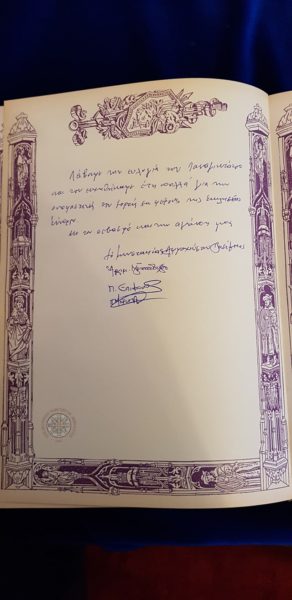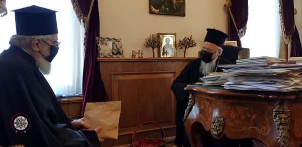 Ο Μητροπολίτης Κωνσταντίας κ. Βασίλειος μετέφερε προς τον Οικουμενικό Πατριάρχη τις ευχές του Μακαριωτάτου Αρχιεπισκόπου Κύπρου κ.κ. Χρυσοστόμου και των μελών της Ιεράς Συνόδου επί τα σεπτά Ονομαστήριά Του, καθώς επίσης και ένα αναμνηστικό δώρο.