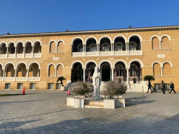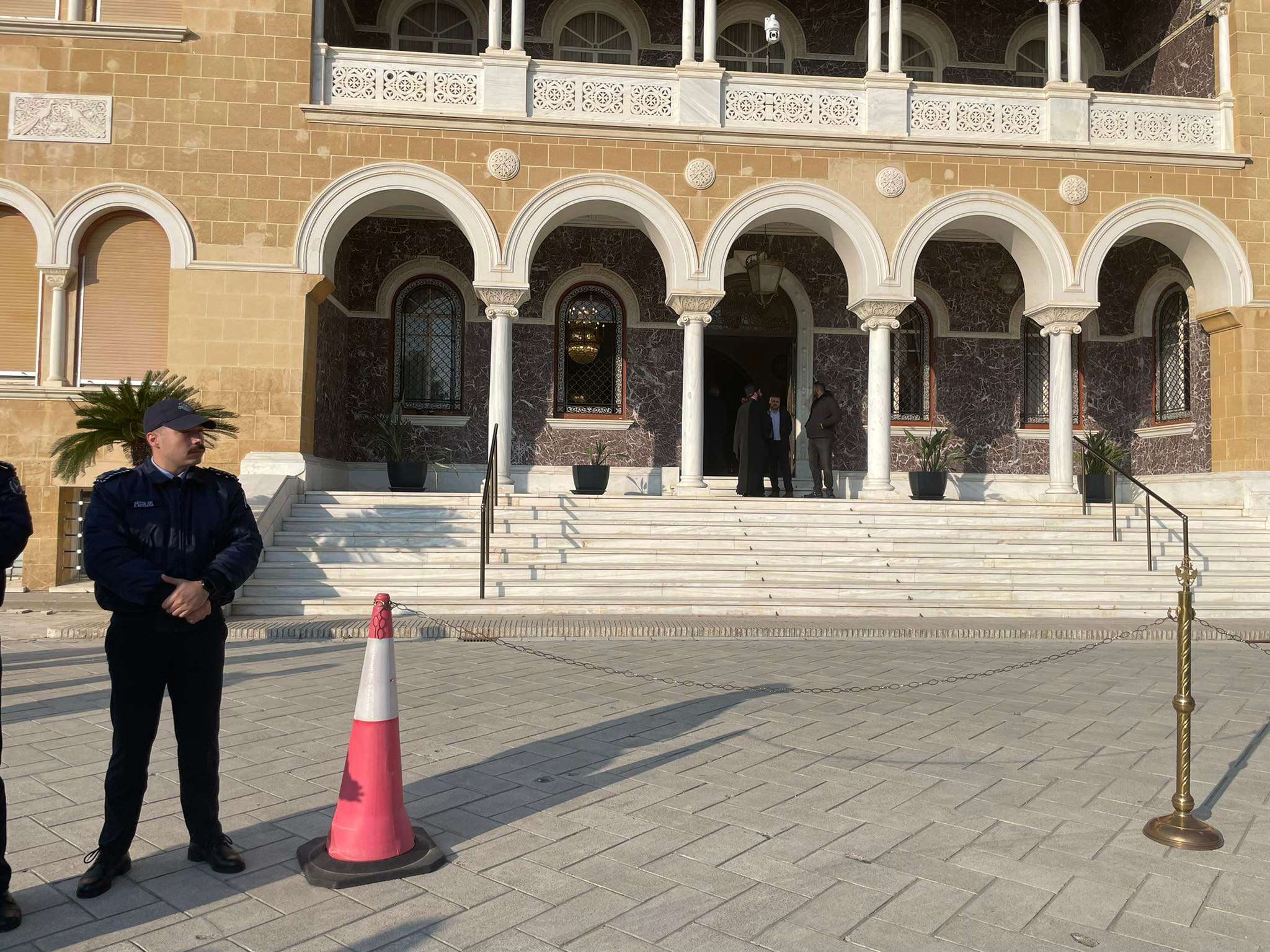 Εξω από την Αρχιεπισκοπή Κύπρου έχουν συγκεντρωθεί πιστοί για να πάρουν την ευλογία του νέου Αρχιεπισκόπου Κύπρου.