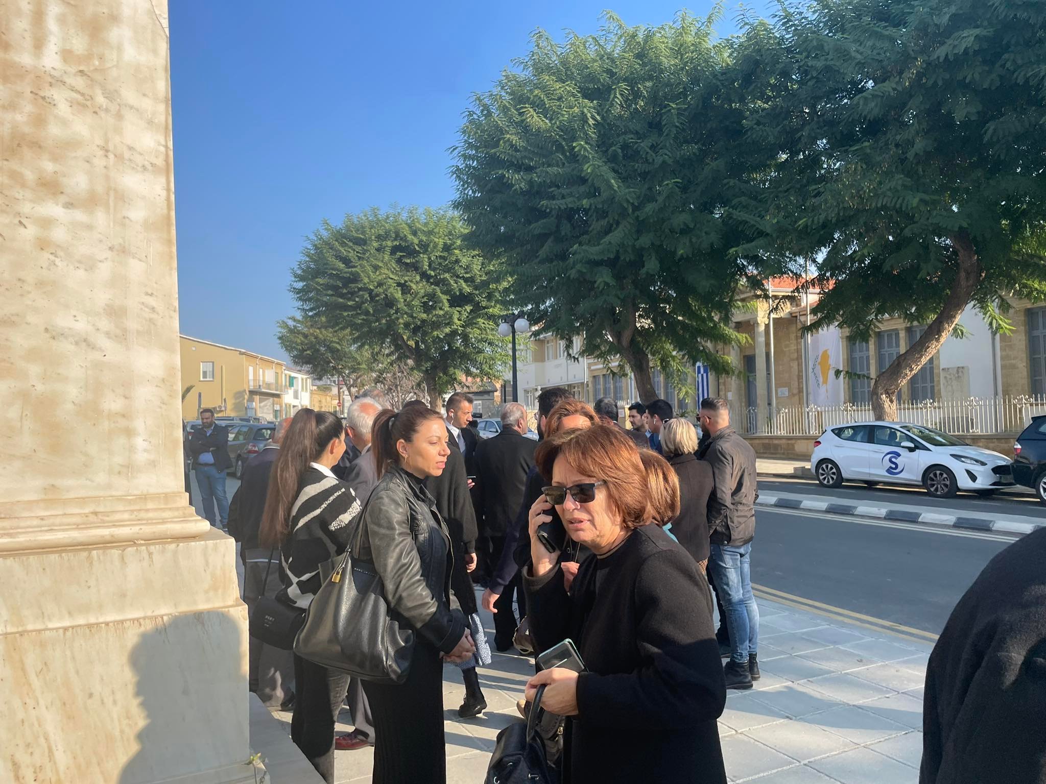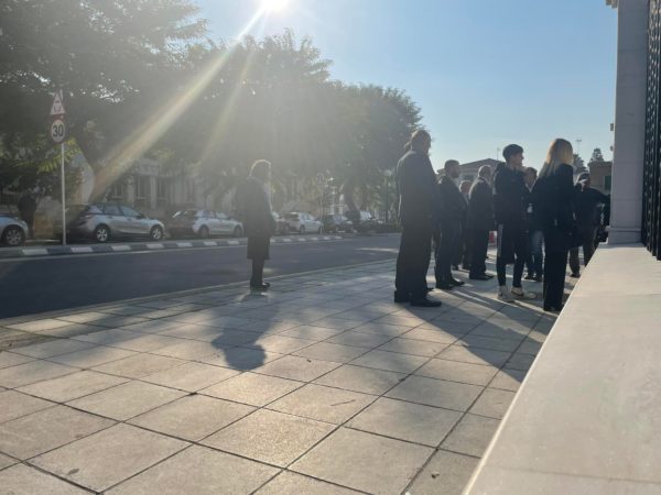 Φωτογραφίες με πιστούς έξω από την Αρχιεπισκοπή Κύπρου