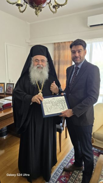 Στις 11:00 π.μ. ο Μακαριώτατος Αρχιεπίσκοπος Κύπρου κ.κ. Γεώργιος πραγματοποίησε επίσκεψη στο Δημαρχείο της Ξάνθης, όπου είχε φιλοφρονητική συνάντηση με τον Δήμαρχο Ξάνθης κ. Ευστράτιο Κοντό.