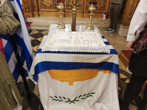 Πριν το τέλος της Θείας Λειτουργίας ο Μακαριώτατος προέστη του Μνημοσύνου υπέρ αναπάυσεως των αγωνισαμένων και ευκλεώς πεσόντων και υπό των πολεμίων αναιρεθέντων κατά τη βάρβαρη τουρκική εισβολή του 1974.