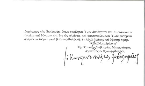 ΕΠΙΣΥΝΑΠΤΕΤΑΙ ΤΟ ΑΠΑΝΤΗΤΙΚΟ ΓΡΑΜΜΑ ΤΟΥ ΠΑΝΑΓΙΩΤΑΤΟΥ ΟΙΚΟΥΜΕΝΙΚΟΥ ΠΑΤΡΙΑΡΧΟΥ: