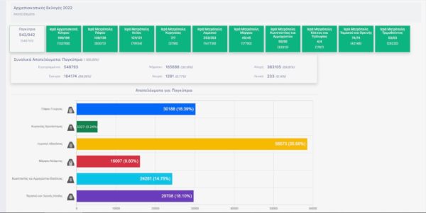 - Ιερά Μητρόπολη Αρχιεπισκοπή: Από τους 133,768, ψήφισαν 35,252, ποσοστό 26.35%