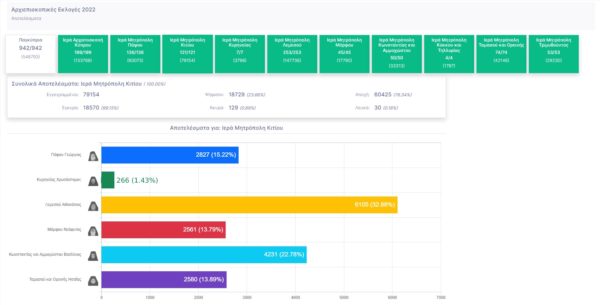 - Μητρόπολη Κυρηνείας: Από τους 3,798 ψήφισαν 1,231, ποσοστό 32.43%