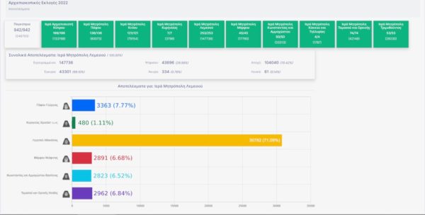 - Μητρόπολη Κύκκου: Από τους 1,787 ψήφισαν 858, ποσοστό 48,01%