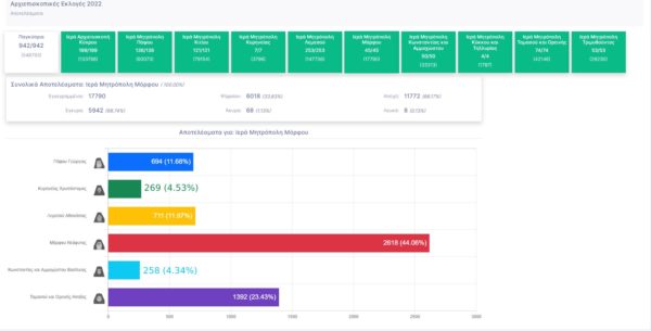 - Μητρόπολη Μόρφου: Από τους 17,790, ψήφισαν 6,018, ποσοστό 33,83%