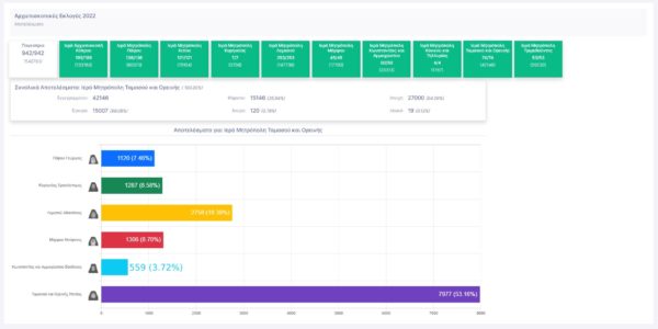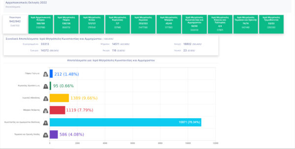 - Ιερά Μητρόπολη Αρχιεπισκοπή: Από τους 133,768, ψήφισαν 35,252, ποσοστό 26.35%