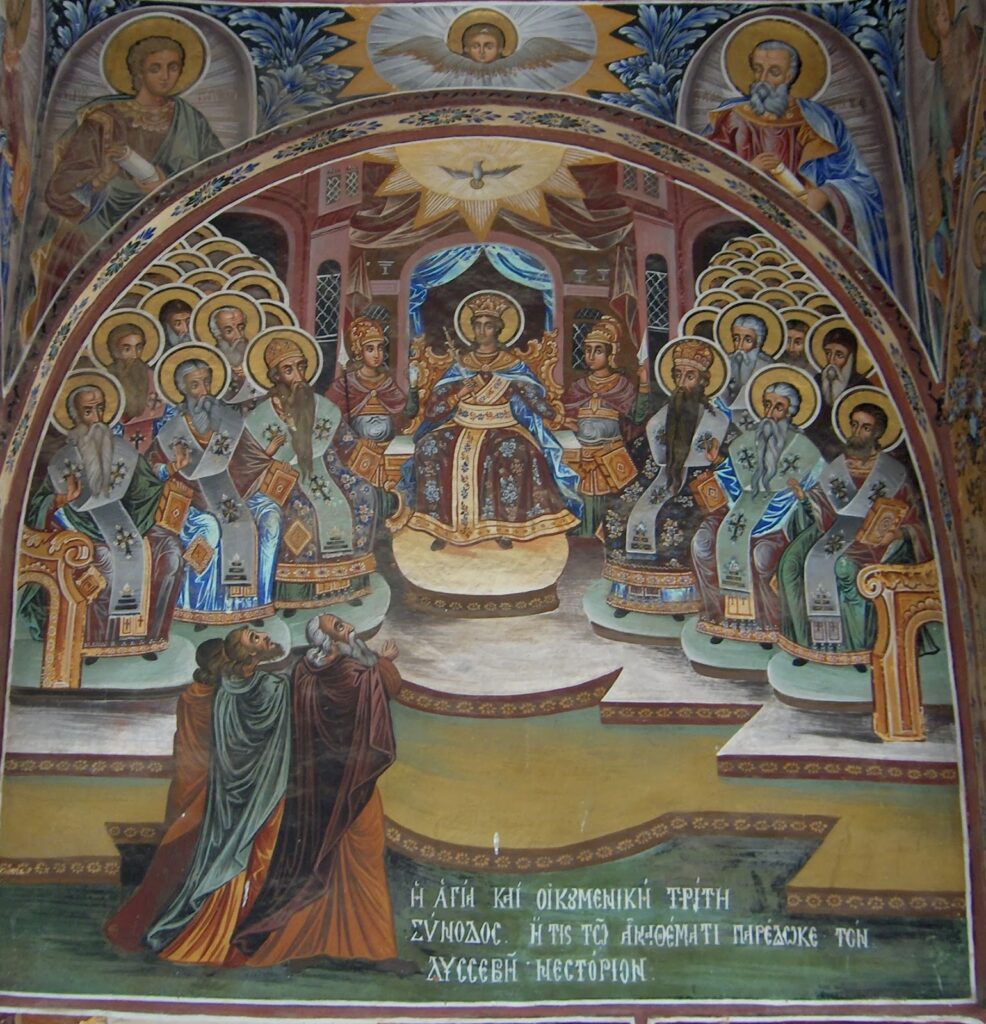 Τον 5ο αιώνα, λοιπόν, διαφάνηκε η αίρεση του Νεστορίου, Πατριάρχη Κωνταντινουπόλεως. Η διαπίστωση της κακοδοξίας του Νεστορίου σημειώθηκε όταν ο νομικός Ευσέβιος, εντόπισε στα λεγόμενα του Αναστασίου (συγκέλου του Νεστορίου), αιρετικές δοξασίες, οι οποίες αφορούσαν στο πρόσωπο της Θεοτόκου.