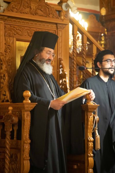 Μετά την τέλεση της Δεήσεως και της αρτοκλασίας, ο Μακαριώτατος απηύθυνε λόγο πατρικό προς το εκκλησιαζόμενο ποίμνιο και παρουσίασε την ζωή και την προσφορά αυτού του αγίου σε όλους μας.