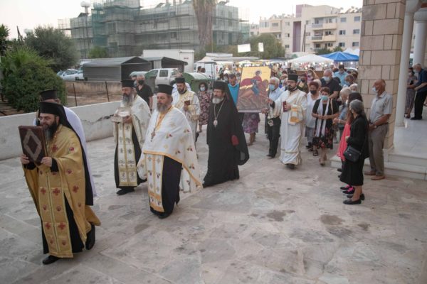 Στον πανηγυρικό εσπερινό συμμετείχαν επίσης ο Θεοφιλέστατος Επίσκοπος Μεσαορίας κ. Γρηγόριος και κληρικοί τής Ιεράς Αρχιεπισκοπής Κύπρου.