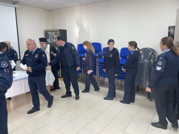 24/01/2023 24/01/2023 Τη Δευτέρα, 23 Ιανουαρίου 2023, ο Πανιερώτατος Μητροπολίτης Κιτίου κ. Νεκτάριος τέλεσε τον αγιασμό στην Αστυνομία Λάρνακας στην παρουσία του Αστυνομικού Διευθυντή Λάρνακας κ. Χρηστάκη Παπαδημητρίου και προσωπικού της Αστυνομίας. Στο τέλος έγινε η καθιερωμένη κοπή της βασιλόπιτας.