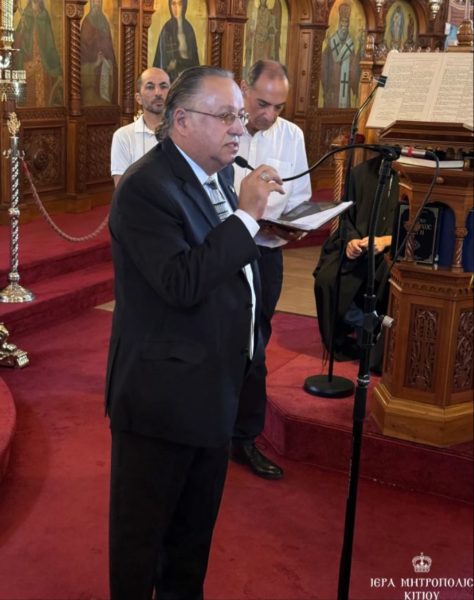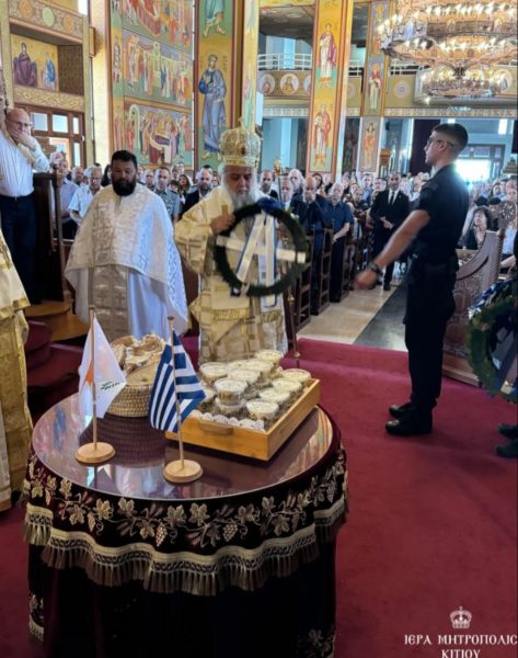 Στο τέλος της Θείας Λειτουργίας τέλεσε το Εθνικό Μνημόσυνο των πεσόντων κατά την Τουρκική Εισβολή του 1974. Την Κυβέρνηση εκπροσώπησε η έντιμη Υπουργός Γεωργίας, Αγροτικής Ανάπτυξης και Περιβάλλοντος, Δρ. Μαρία Παναγιώτου, η οποία και εκφώνησε τον επιμνημόσυνο λόγο.