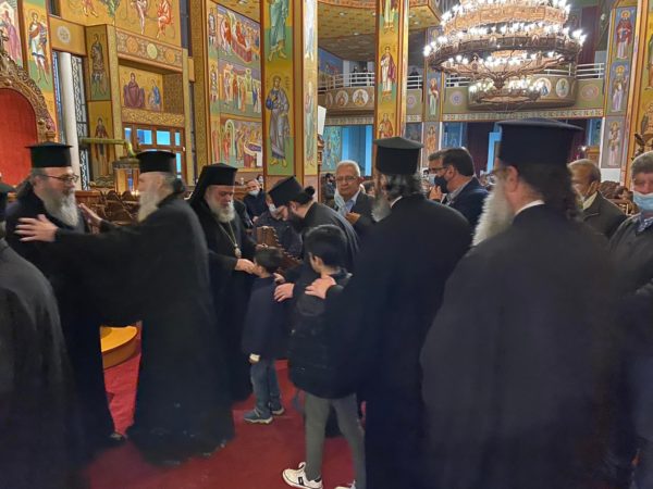 Στο τέλος του εσπερινού κληρικοί και λαϊκοί αντάλλαξαν την καθιερωμένη ευχή «Καλό Στάδιο».