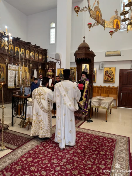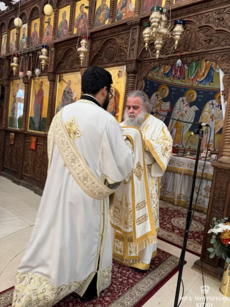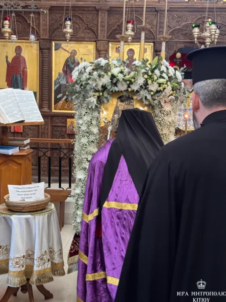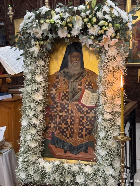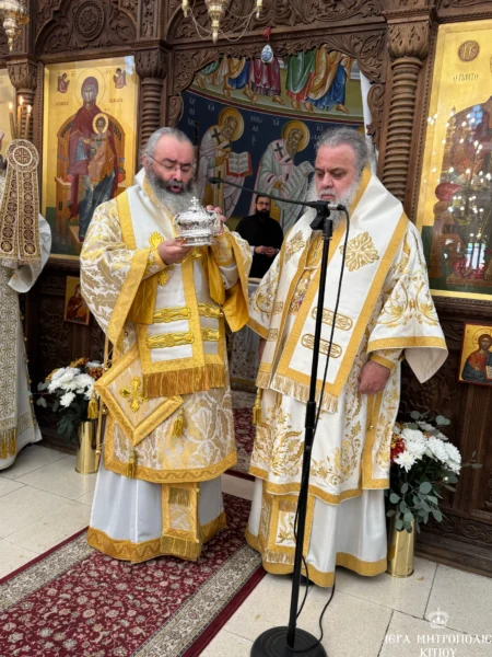 11/11/2024 11/11/2024 Το Σάββατο, 9 Νοεμβρίου 2024, ανήμερα της εορτής του Αγίου Νεκταρίου, ήγε τα ονομαστήριά του ο Πανιερώτατος Μητροπολίτης Κιτίου κ. Νεκτάριος, ο οποίος συλλειτούργησε με τον Θεοφιλέστατο Επίσκοπο Αμαθούντος, κ. Νικόλαο στον πανηγυρίζοντα Ιερό Ναό Αγίου Νεκταρίου στην Τερσεφάνου. Στο συλλείτουργο παρέστη συμπροσευχόμενος ο Σεβασμιώτατος Μητροπολίτης Βόστρων κ. Τιμόθεος. Επίσης, συμμετείχαν ιερείς και διάκονοι της...