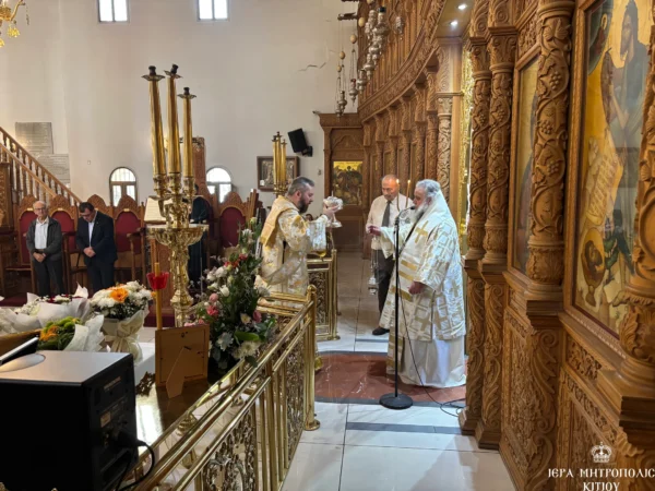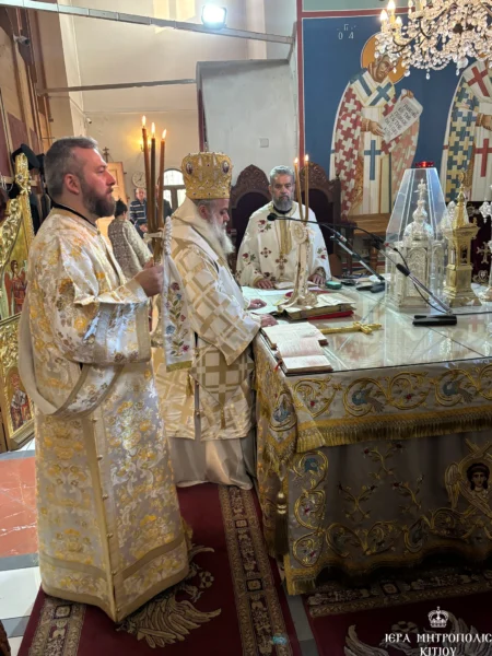 O Μητροπολίτης Κιτίου στον Ιερό Ναό Παναγίας Φανερωμένης στη Λάρνακα την Κυριακή Η’ Λουκά
