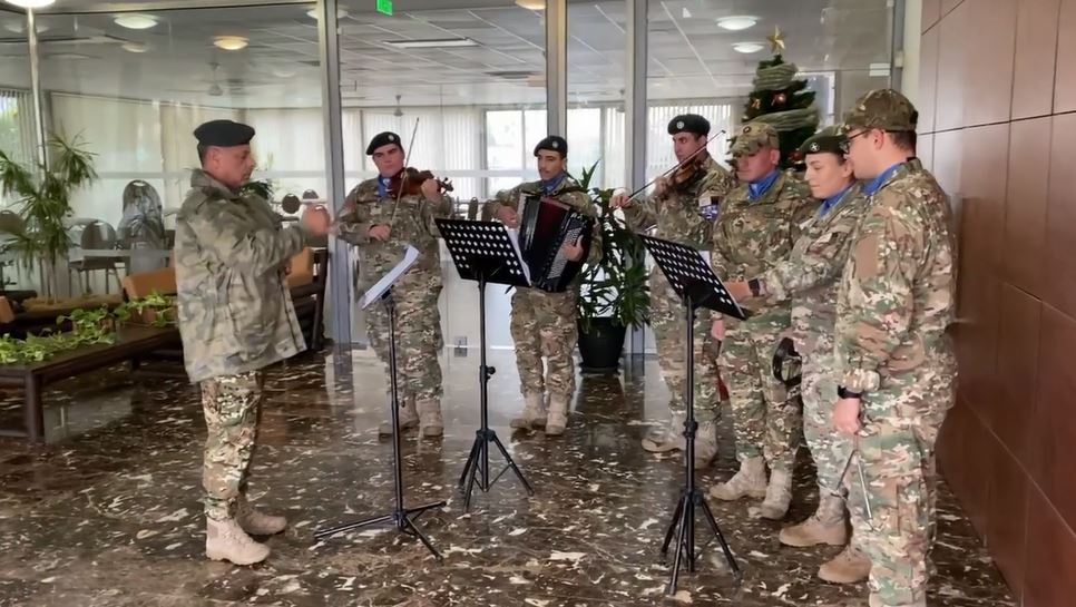 Η Φιλαρμονική της 1ης Μηχανοκίνητης Ταξιαρχίας Πεζικού της Λάρνακας απέδωσε με άριστη εκτέλεση τα Πρωτοχρονιάτικα κάλαντα δημιουργώντας ένα άκρως εορταστικό κλίμα στην Ιερά Μητρόπολη Κιτίου την Παρασκευή 31 Δεκεμβρίου 2021.