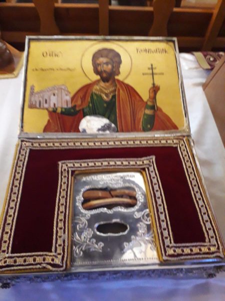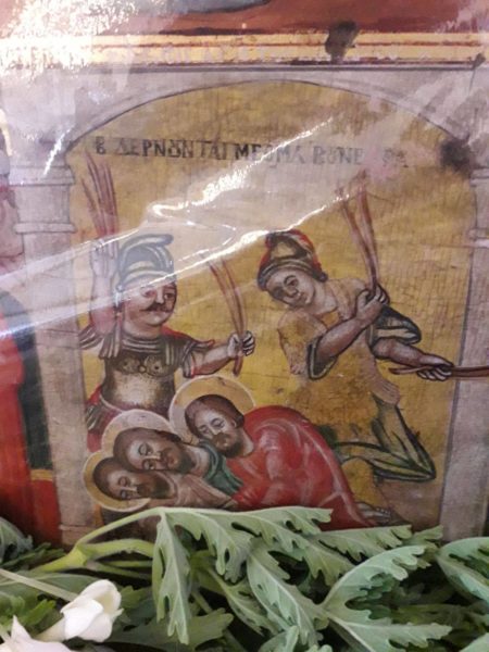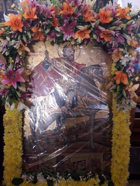 Μετά το πέρας της Θείας Λειτουργίας οι πιστοί είχαν την ευκαιρία να δουν τον τάφο του Αγίου που αποκαλύφθηκε πρόσφατα και βρίσκεται κάτω από την αγία τράπεζα. “Η Χάρη του μεγάλου αυτού Αγίου μάρτυρα βοήθεια όλων μας”, καταλήγει η Ιερά Μητρόπολη.