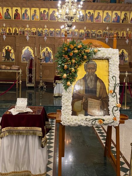 Προς το τέλος του εσπερινού ο Πανιερώτατος αφού μίλησε σχετικά με τον τιμώμενο Άγιο χειροθέτησε σε αναγνώστες τον ιεροψάλτη και άλλα δυο άτομα που διακονούν το Ναό.