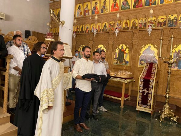 Προς το τέλος του εσπερινού ο Πανιερώτατος αφού μίλησε σχετικά με τον τιμώμενο Άγιο χειροθέτησε σε αναγνώστες τον ιεροψάλτη και άλλα δυο άτομα που διακονούν το Ναό.