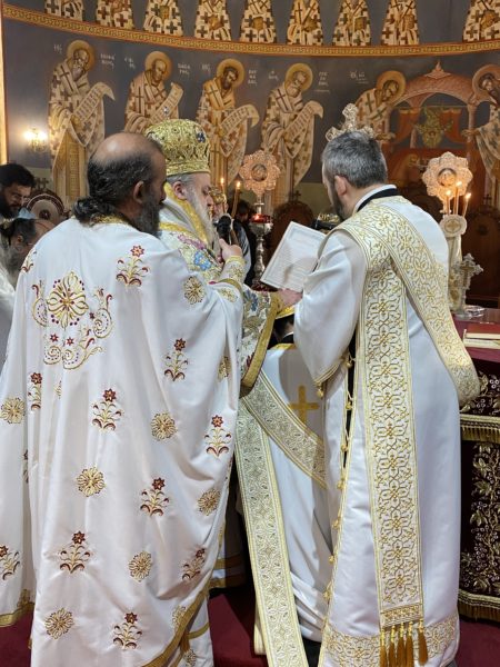Κατά τη διάρκεια της Θείας Λειτουργίας χειροτόνησε εις Πρεσβύτερον τον Διάκονο Αλέξανδρο Μότρεα.