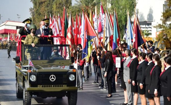Οι προκλητικοί εορτασμοί άρχισαν από χθες με μαθητική παρέλαση και άλλες εκδηλώσεις σε κάθε γωνιά της κατεχόμενης Κύπρου. Το απόγευμα έγιναν ειδικές τελετές στα μαυσωλεία των Φαζίλ Κιουτσούκ και Ραούφ Ντενκτάς, όσο τα τουρκοκυπριακά τηλεοπτικά κανάλια μετέδιδαν μαραθώνια προπαγανδιστικά αφιερώματα στην επέτειο και την ιστορία του νησιού.