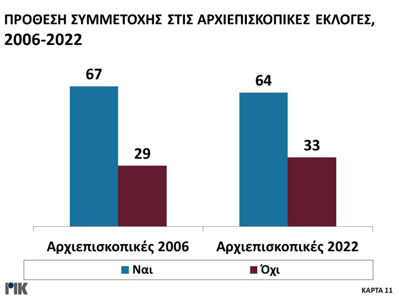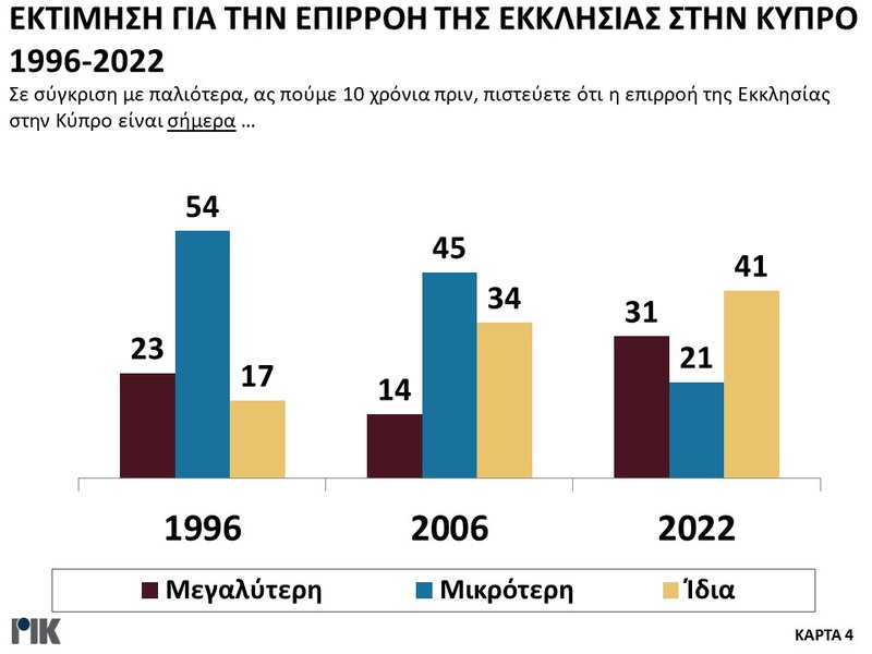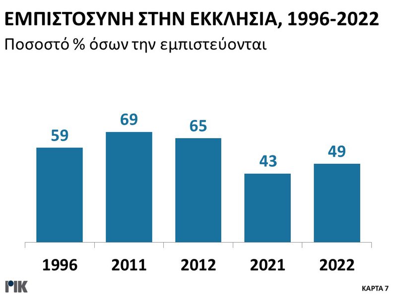 Εξάλλου ποσοστό 49% απάντησε ότι μάλλον εμπιστεύεται την Εκκλησία όπως λειτουργεί σήμερα και 33% ότι μάλλον δεν την εμπιστεύεται.
