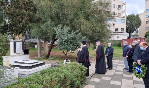 Στο τέλος της Θείας Λειτουργίας, τελέστηκαν τα Μνημόσυνα του αοιδίμου Αρχιεπισκόπου Κύπρου κυρού Χρυσοστόμου Α΄, των εθελοντών αγωνιστών και αστυνομικών που έπεσαν μαχόμενοι κατά την τουρκανταρσία του 1963-64, καθώς και κατά το Πραξικόπημα και την Εισβολή του 1974. Ακολούθησε Τρισάγιο στο μνημείο των πεσόντων, το οποίο βρίσκεται στη νότια πλευρά του προαύλιου χώρου του Ιερού Ναού, όπου ο Θεοφιλέστατος κατέθεσε στεφάνι εκ μέρους του Μακαριωτάτου Αρχιεπισκόπου Κύπρου.