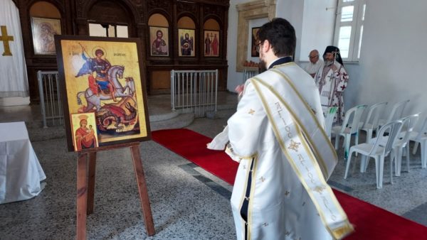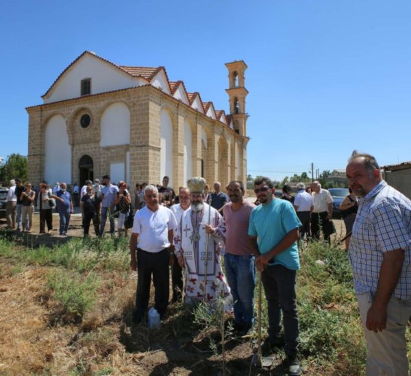 Ακολούθως, τελέστηκε λιτανεία πέριξ του Ιερού Ναού, επικαλούμενοι όλοι τις πρεσβείες του Αγίου Μεγαλομάρτυρος Γεωργίου προς τον Κύριο και Λυτρωτή των ψυχών και των σωμάτων ημών, Ιησού Χριστό. Ακολούθησε η φύτευση ελιάς, ευλογία του Μακαριωτάτου, στο προαύλιο του Ναού. Κατά τη φύτευση χρησιμοποιήθηκε και αγιασμός που τελέστηκε το πρωί.