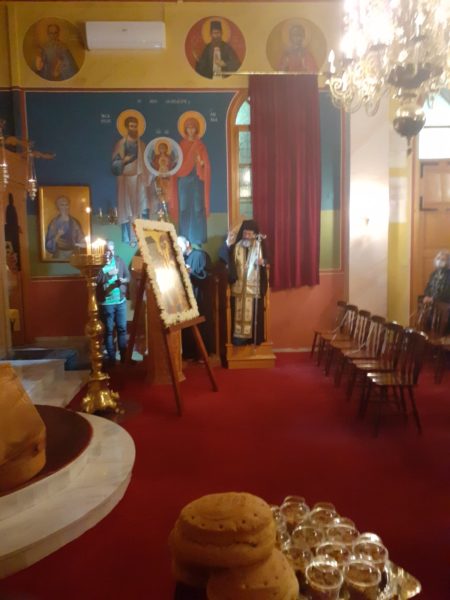Το Σάββατο, 20 Νοεμβρίου 2021, τελέστηκε αγρυπνία, στον Πανηγυρικό Εσπερινό της οποίας χοροστάτησε ο Επόσκοπος Μεσαορίας κ. Γρηγόριος, συμπαραστατούμενος από τον Οικον. π. Νικόλαο Κούτσιο και τον Διάκονο π. Ανδρέα Ματέι.