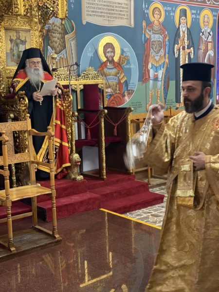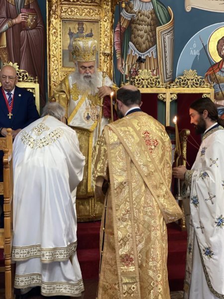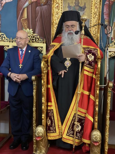 Στο τέλος της Θείας Λειτουργίας ο Μακαριώτατος απένειμε το Οφφίκιο του Οικονόμου στον Πρεσβύτερο π. Ιωάννη Νεάρχου.