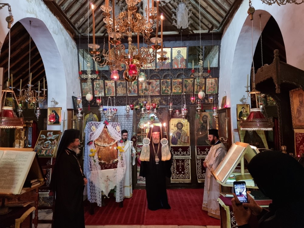 Ο Μακαριώτατος στο κήρυγμα του θείου λόγου αναφέρθηκε στο θεολογικό περιεχόμενο του τροπαρίου «Ἐν τῇ Γεννήσει σου, σύλληψις ἄσπορος, ἐν τῇ Κοιμήσει σου, νέκρωσις ἄφθορος».