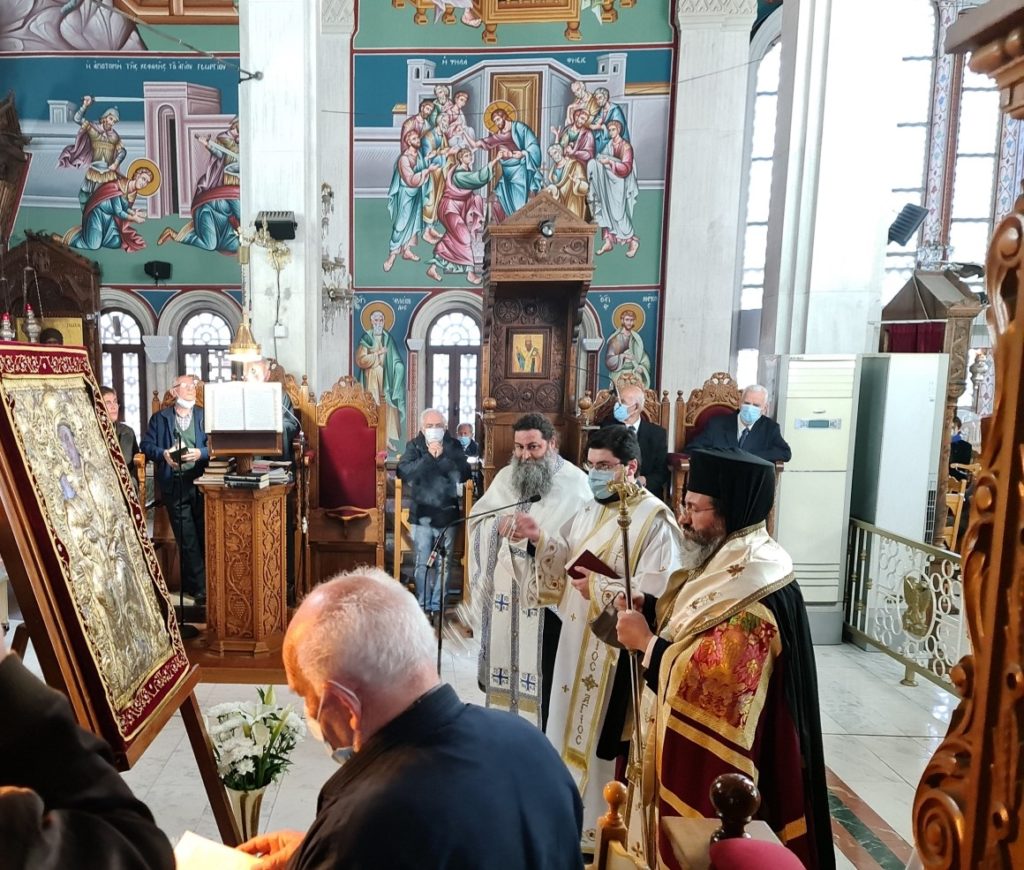 Την Τετάρτη, 24 Μαρτίου 2021, τελέστηκε ο Πανηγυρικός Εσπερινός χοροστατούντος του Επισκόπου Μεσαορίας κ. Γρηγορίου, συμπαραστατούμενος από τον Πρωτ. π. Ανδρέα Ανδρέου και τον διάκονο π. Ανδρέα Ματέι.