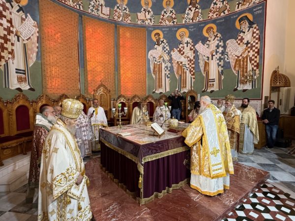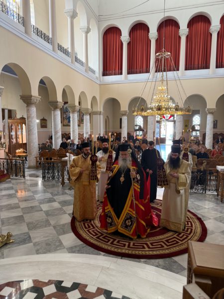 Κορυφαίο γεγονός η Θεία Λειτουργία η οποία τελέστηκε στον Ιερό Ναό των Αγίων Πέτρου και Παύλου της πόλεως των Χανίων, προεξάρχοντος του Μακαριωτάτου Αρχιεπισκόπου Κύπρου κ.κ. Γεωργίου, συλλειτουργούντων του Σεβασμιωτάτου Μητροπολίτου Κισάμου και Σελίνου κ. Αμφιλόχιου, εκπροσωπών την Ιερά Επαρχιακή Σύνοδο της Εκκλησίας Κρήτης, του Σεβασμιωτάτου Ποιμενάρχου, Μητροπολίτου Κυδωνίας και Αποκορώνου κ. Δαμασκηνού καθώς και των Θεοφιλεστάτων Επισκόπων: Ευμενείας κ. Ειρηναίου, Καθηγουμένου της Ιεράς Πατριαρχικής Μονής Γουβερνέτου και Κνωσσού κ. Μεθοδίου, Βοηθού Επισκόπου του Σεβασμιωτάτου Αρχιεπισκόπου Κρήτης κ. Ευγενίου. Στο τέλος της Θείας Λειτουργίας τελέστηκε ιερό Μνημόσυνο για τους ήρωες του Απελευθερωτικού Αγώνα ως και τους Κυπρίους και Κρήτες πεσόντες κατά την Τουρκική εισβολή στην Κύπρο.