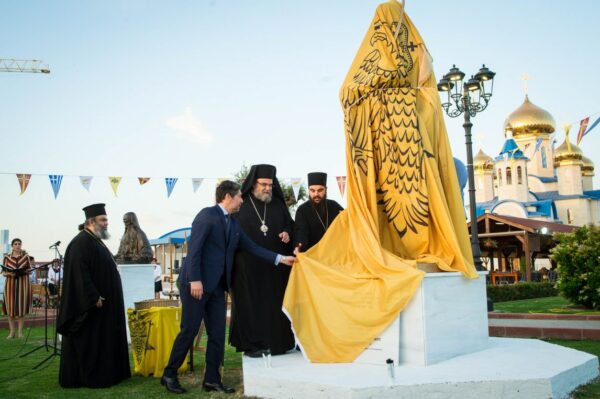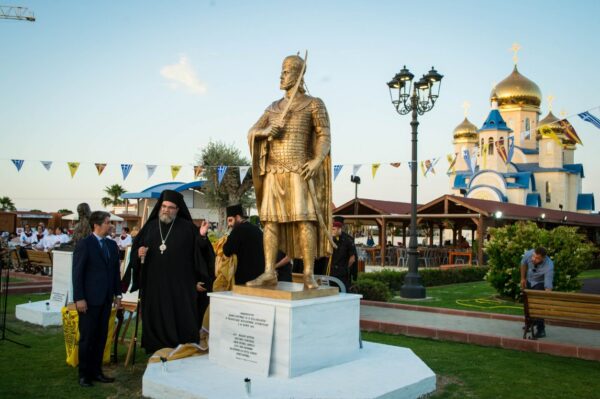 Ακολούθως ο Πανιερώτατος Μητροπολίτης Ταμασού και Ορεινής κ. Ησαΐας τέλεσε τα αποκαλυπτήρια του ανδριάντα του Κωνσταντίνου ΙΑ’ Παλαιολόγου και έγινε κατάθεση στεφάνων ενώπιον του ανδριάντα.