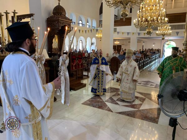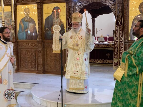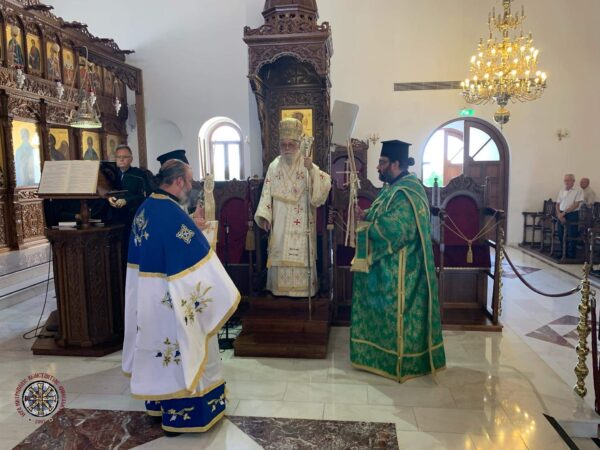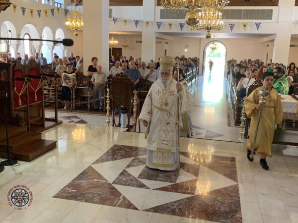 Στον Ιερό Ναό του Τιμίου Σταυρού Πάνω Πολεμιδιών Λεμεσού, τέλεσε τη Θεία Λειτουργία και κήρυξε το θείο Λόγο, ο Πανιερώτατος Μητροπολίτης Κωνσταντίας και Αμμοχώστου κ. Βασίλειος, σήμερα Κυριακή, 5 Ιουλίου 2020.