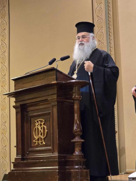 “Με αισθήματα συγκίνησης να κατακλύζουν το είναι μου, ανεβαίνω απόψε στο βήμα αυτό για να εκφράσω τις ευχαριστίες μου στην Εφορεία του Φιλολογικού Συλλόγου ΠΑΡΝΑΣΣΟΣ για την ύψιστη τιμή που μου κάνει να με έχει ψηφίσει Επίτιμο Μέλος του Συλλόγου. Θεωρώ ότι η τιμή αυτή από τον πνευματικό φάρο της Ελλάδος, την πρώτη Ακαδημία Γραμμάτων και Τεχνών της χώρας, γίνεται προς τον δισχιλιόχρονο θεσμό που εκπροσωπώ, την μαρτυρική Αυτοκέφαλη Εκκλησία της Κύπρου· εκείνη που ταύτισε κυριολεκτικά τις τύχες της με τις τύχες του ποιμνίου της· εκείνη που κράτησε τη γλώσσα και την εθνική αυτοσυνειδησία μας· εκείνη που πρόσφερε επανειλημμένα τους ιεράρχες της ως εξιλαστήρια θύματα στους κάθε λογής κατακτητές, προκειμένου να επιζήσει ο λαός της· εκείνην που για δυο χιλιάδες χρόνια, όση και η ζωή της, κρατά μόνιμα στραμμένο το βλέμμα των πιστών της εδώ στο εθνικό κέντρο, την μητέρα πατρίδα μας. Όντως σ’ αυτή την τροφό του εν Κύπρω παροικούντος λαού του Θεού, απευθύνεται η τιμή και μ’ αυτή την προϋπόθεση την αποδέχομαι, εκ μέρους της, ευγνωμόνως”.