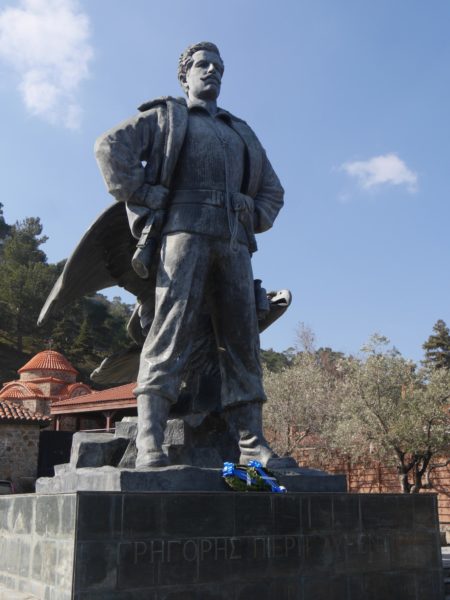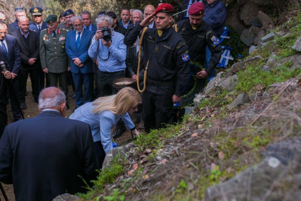 Στη συνέχεια, ακολούθησε η αναπαράσταση της μάχης του Μαχαιρά με τους Άγγλους κατά την οποία σκοτώθηκε ο Ήρωας της ΕΟΚΑ Γρηγόρης Αυξεντίου. Ο Γρηγόρης Αυξεντίου κάηκε ζωντανός αρνούμενος να παραδοθεί στους κατακτητές. Ο Γρηγόρης Αυξεντίου δεν σκοτώθηκε για να τουρκοποιήσουμε την Κύπρο, την οποία πρέπει να απελευθερώσουμε, για να απολαμβάνει ο καθένας από τους κατοίκους της τα ανθρώπινα δικαιώματα που απολαμβάνουν όλοι οι ελεύθεροι άνθρωποι, είπε ο Αρχιεπίσκοπος κ.κ. Γεώργιος.