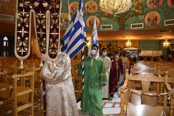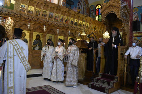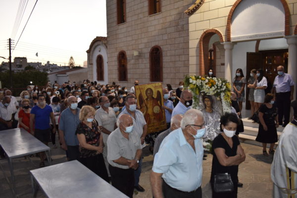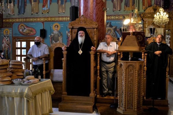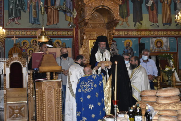 Τον Μακαριώτατο πλαισίωσαν ο Θεοφιλέστατος Επίσκοπος Καρπασίας κ. Χριστοφόρος και κληρικοί τής Ιεράς Αρχιεπισκοπής. Πολλοί ενορίτες αλλά και λοιποί εορτάζοντες εκ της κατεχόμενης Γιαλούσας και όχι μόνο, προσκόμισαν τις προσφορές και τα κόλλυβά τους για να ευλογηθούν κατά την αρτοκλασία, ενώ προηγουμένως είχε τελεσθεί λιτανεία και αναπεμφθεί δέηση, όπου αναγνώστηκαν τα ονόματα όλων των επιτελούντων την εορτή.