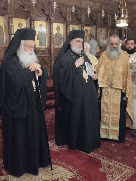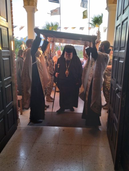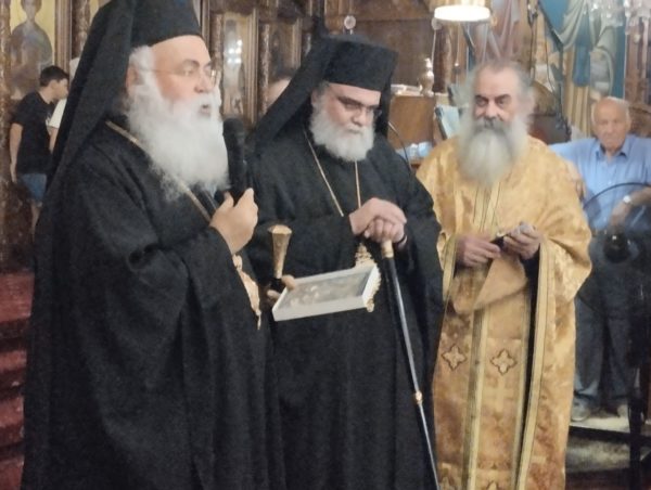 Εκ μέρους του Ναού, ο Πανιερώτατος δώρησε στον Μακαριώτατο εικόνισμα της Μεταμορφώσεως του Σωτήρος Χριστού.