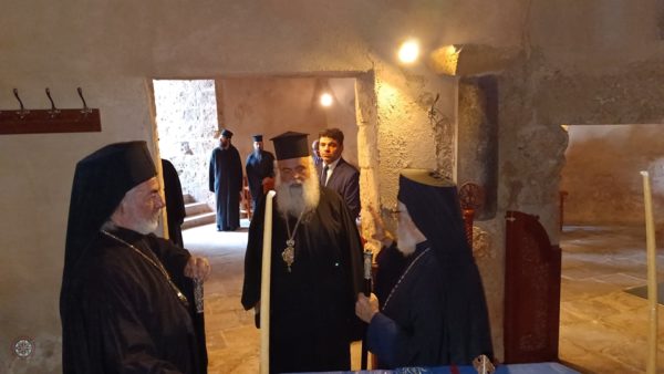 Προηγουμένως ο Σεβασμιώτατος επισκέφθηκε την αρχαία Μόνη της Αγίας Νάπας όπου ξεναγήθηκε στο ιστορικό χώρο από τον Μητροπολίτη Κωνσταντίας Βασίλειο. Παρών ήταν και ο Δήμαρχος Αγίας Νάπας Χρίστος Ζαννέττου ο οποίος καλωσόρισε τον υψηλό επισκέπτη στην Αγία Νάπα, προσφέροντάς και αναμνηστικό δώρο.