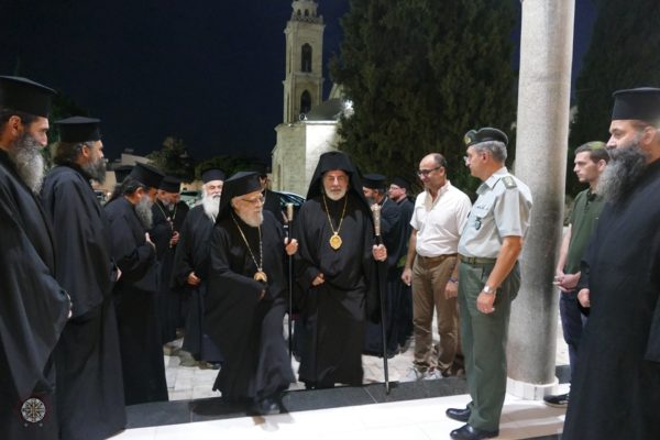 Τον Αρχιεπίσκοπο Νικήτα συνοδεύουν ο Θεοφιλέστατος Επίσκοπος Κλαυδιουπόλεως κ. Ιάκωβος, βοηθός επίσκοπος της Ιεράς Αρχιεπισκοπής και οι αιδεσιμότατοι Πρωτοπρεσβύτεροι Θεόδωρος Πολυβίου και Χριστόδουλος Χριστοδούλου. Ο Σεβασμιώτατος προσκύνησε στον Μητροπολιτικό Ιερό Ναό του Αγίου Γεωργίου όπου ευλόγησε τους παρισταμένους πιστούς.