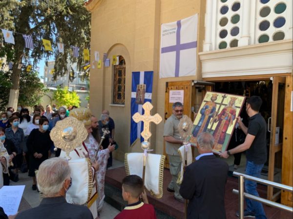 Το πρωί του Σαββάτου 21 Μαΐου 2022 τελέστηκε πανηγυρική αρχιερατική Θεία Λειτουργία στον κοιμητηριακό ιερό ναό των αγίων Κωνσταντίνου και Ελένης στο Νέο Κοιμητήριο Λευκωσίας, προεξάρχοντος του Θεοφιλεστάτου Επισκόπου Νεαπόλεως κ. Πορφυρίου, συλλειτουργούντων κληρικών της αρχιεπισκοπικής περιφέρειας Λευκωσίας.