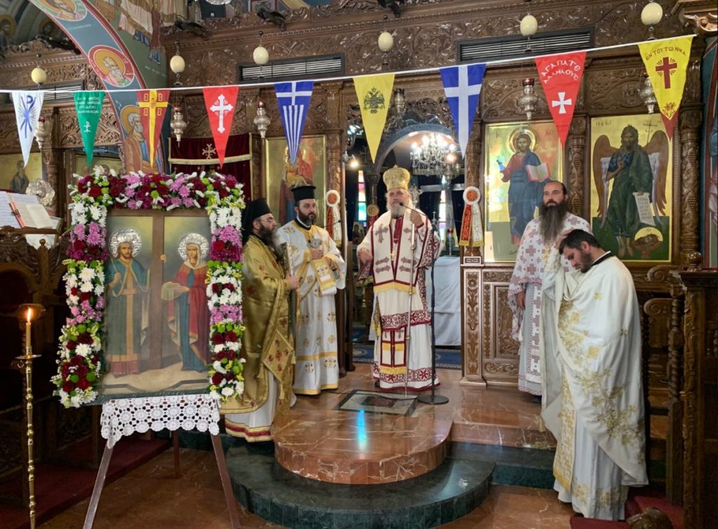 Ο Θεοφιλέστατος κήρυξε τον θείο λόγο μετά το Ευαγγέλιο, εξαίροντας την προσφορά των δύο μεγάλων αυτών θεοστέπτων αγίων μας στην Εκκλησία. Σκιαγραφώντας τον βίο τους, ο Θεοφιλέστατος ανέδειξε τα έργα και τις πρωτοβουλίες τους, ώστε σήμερα να καυχόμαστε ότι ελεύθερα λατρεύουμε τον αληθινό Θεό.
