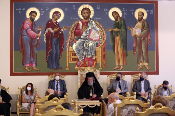 Το Γράμμα της Αυτού Θειοτάτης Παναγιότητος του αρχιεπισκόπου Νέας Ρώμης και Οικουμενικού Πατριάρχου κ.κ. Βαρθολομαίου, ανέγνωσε ο Αρχιγραμματέας της Ιεράς Συνόδου της Εκκλησίας Κύπρου, Αρχιμ. Γεώργιος Χριστοδούλου.
