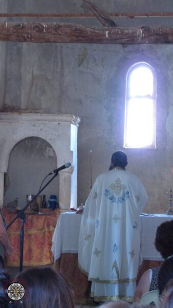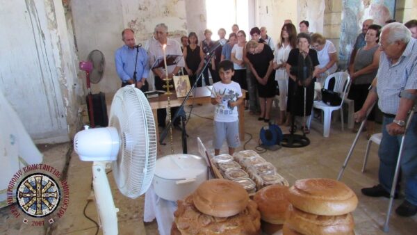 Στο τέλος της Θείας Λειτουργίας, τελέστηκαν τα ιερά μνημόσυνα ενώ ακολούθησε η λιτάνευση του ιερού εικονίσματος γύρω από το ναό. Στη συνέχεια, οι ξεριζωμένοι πρόσφυγες της Σύγκρασης πήραν τον δρόμο της πικρής επιστροφής στις ελεύθερες περιοχές, αφού προηγουμένως στάθηκαν για λίγο για να αποχαιρετίσουν τους «σκλαβωμένους» προγόνους, στο γεμάτο με σπασμένους σταυρούς και ανεσκαμμένα μνήματα, κοιμητήριο της κοινότητος τους, που βρίσκεται στη νότια πλευρά του ναού.