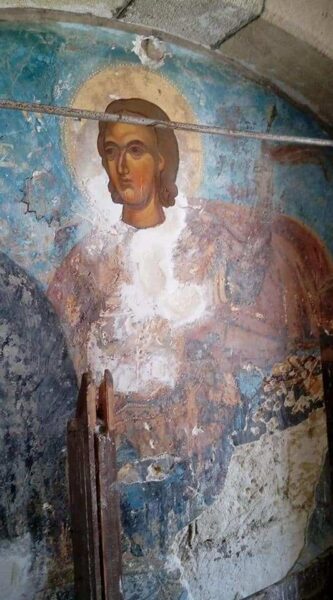 Αξίζει να σημειωθεί ότι οι παρευρισκόμενοι είχαν την ευκαιρία να δουν εκ του σύνεγγυς την διόρθωση η οποία έγινε τις προηγούμενες ημέρες από τον αγιογράφο κ. Μιχάλη Χατζήμιχαήλ στο πρόσωπο της βεβηλωμένης τοιχογραφίας του Αγίου Προκοπίου έφιππου, η οποία δεσπόζει επιβλητικά στο κέντρο του ναού.