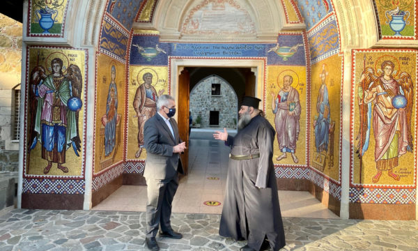 Στο πλαίσιο της επίσκεψής του στην Μεγαλόνησο ως εκπρόσωπος του προέδρου της Βουλής των Ελλήνων κ. Κώστα Τασούλα, στις εκδηλώσεις Μνήμης για την κατεχόμενη Μόρφου, είχε συνάντηση με τον Υπουργό Εξωτερικών της Κύπρου κ. Νίκο Χριστοδουλίδη ενώ επισκέφθηκε των Αρχηγό ΓΕΕΦ Αντιστράτηγο Δημόκριτο Ζερβάκη καθώς και τη Μονή Κύκκου.