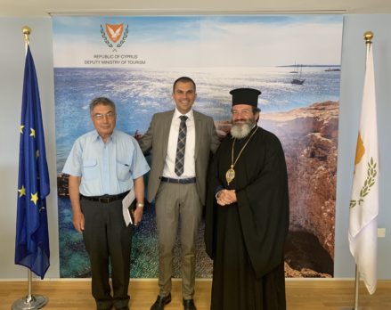 Την Τρίτη, 23 Ιουλίου 2019, ο Πρόεδρος του Συνοδικού Γραφείου Προσκυνηματικών Περιηγήσεων της Εκκλησίας της Κύπρου, Θεοφιλέστατος Επίσκοπος Μεσαορίας κ. Γρηγόριος, συνοδευόμενος από συνεργάτες του, επισκέφθηκε τον Έντιμο Υφυπουργό Τουρισμού κ. Σάββα Περδίο στο γραφείο του.
